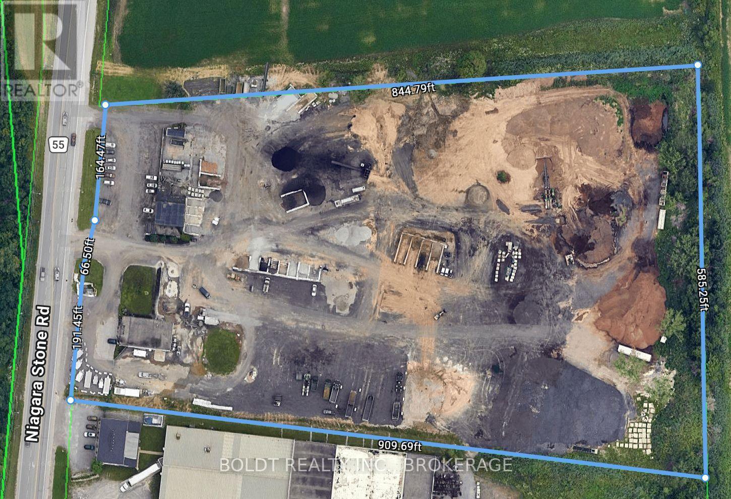 Rare opportunity to acquire a 9.76-acre property in Niagara-on-the-Lake offering a combination of General Industrial (M2) zoning (+/- 3 acres) on the developed industrial portion and Rural (A) zoning (+/- 6.76 acres) on the balance of the lands. The industrially zoned area contains the existing buildings and primary yard space, while the remaining lands form the agricultural component. Strategically located on Niagara Stone Road with 419 feet of frontage, the property offers exceptional visibility and accessibility. Quick access to the QEW, Highway 406, and U.S. border crossings provides excellent connectivity for logistics, contractor operations, and regional service businesses. Proximity to major transportation corridors and the Welland Canal further enhances the property's appeal for industrial users. The site includes a 2,400 sq.ft. main industrial/retail building and a 4,217 sq.ft. secondary shop building, for a total of 6,617 sq.ft. of building area. The improvements feature four grade-level (drive-in) overhead doors and functional interior space suitable for showroom, storage, workshop, or light industrial operations. Expansive asphalt and gravel yard areas provide ample space for outdoor storage, equipment staging, fleet vehicles, or contractor use. Municipal water service and septic system in place. A unique opportunity to secure a large industrial parcel in Niagara-on-the-Lake with strong frontage, excellent highway access, and significant yard capacity. (id:27)